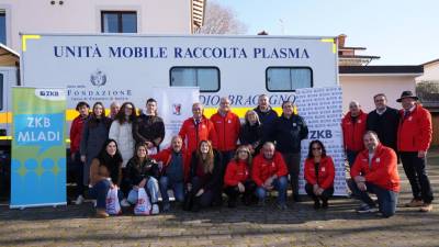 Skupinska fotografija pred krvodajalskim avtodomom v Doberdobu (BUMBACA) Goriška Tudi mladi so pokazali svoje dobro srce Katarina Visintin | 28. jan. 2024 | 7:25