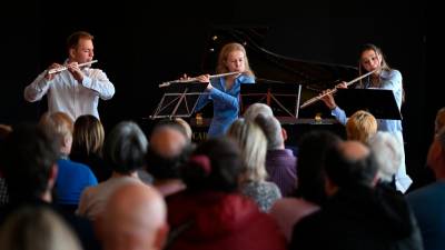 Mladi flavtisti Glasbene matice na glasbeni matineji v tržaškem Kulturnem domu (FOTODAMJ@N) Kultura Na zaključni matineji mladi flavtisti in pianisti GM Poljanka Dolhar | 1. apr. 2025 | 16:24