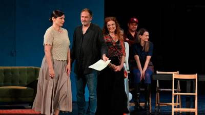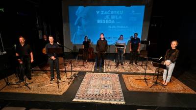 Nastopajoči v tokratnem programu Ars teatralis so bili igralci, glasbenika in napovedovalka (FOTODAMJ@N) Tržaška V začetku je bila beseda pisatelja Alojza Rebule Urška Petaros | 12. sep. 2024 | 16:33