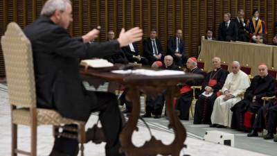 Rupnik predava, v prvi vrsti papež Frančišek (ANSA) Še Rupnik naj bi redovnici namerno zlomil prst Jaruška Majovski | 30. jan. 2024 | 15:46