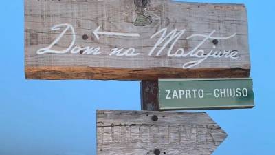Pomazana kažipota se nahajata v bližini koče Pelizzo (STEFANO COREN) Še Vandali s črno barvo nad slovenske napise na Matajurju Novi Matajur | 30. jul. 2024 | 15:45
