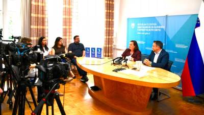 Današnja predstavitev niza dogodkov Dobrodošli doma, državna sekretarka Vesna Humar in minister za Slovence v zamejstvu in po svetu Matej Arčon (USZS) Še Slovence z vseh koncev sveta na Goriško vabi trideset dogodkov Gabriel Milic | 11. jun. 2025 | 19:34