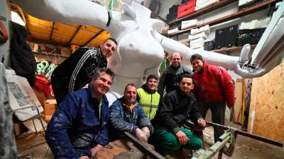 Ekipa pustarjev iz Medjevasi in Štivana hiti z dokončevanjem pustnega voza( Fotodamj@n ) Tržaška Medvejsko-štivanski levi držijo skupaj Eva Skabar | 21. feb. 2025 | 8:20