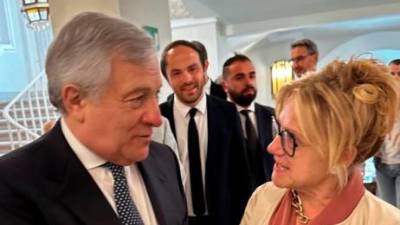 Antonio Tajani in kandidatka SSk Franca Padovan v Meranu (foto SSk) Še Tajanijeve besede vihar v kozarcu vode? Aljoša Fonda | 7. maj 2024 | 6:44