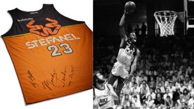 Michael Jordan in Boris Vitez v dresu Stefanela (OSEBNI ARHIV) Šport Jordanov dres v barvah Stefanela znova na dražbi Erik Piccini | 10. apr. 2024 | 13:04