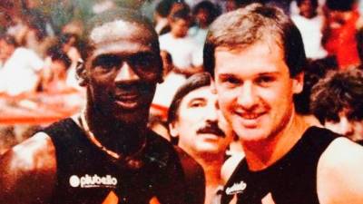 Michael Jordan in Boris Vitez (ARHIV)( ) Šport Na dražbi copati, s katerimi je Jordan igral v Trstu (video) Aljoša Fonda | 27. jul. 2020 | 18:04