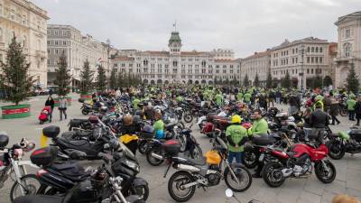 Pisana množica Miklavžev na motorjih (FOTODAMJ@N) Tržaška Miklavž se je pripeljal na motornem kolesu Spletno uredništvo | 7. dec. 2019 | 19:48