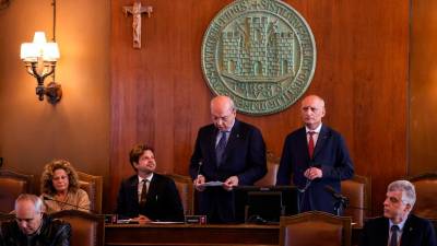 Komemoracija Mirana Hrovatina v mestni hiši, z leve Miranova žena Patrizia Scremin, sin Ian Hrovatin in tržaški župan Roberto Dipiazza (FOTODAMJ@N) Tržaška Miran Hrovatin bo dobil svojo ulico Sara Sternad | 20. mar. 2024 | 17:50