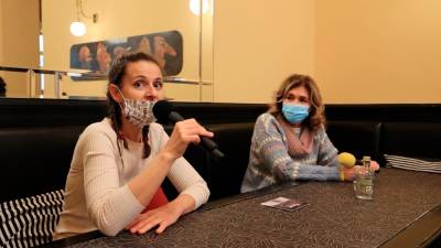 Karol Hrovatin (levo) in Daniela Lucchetta na predstavitvi v kaverni San Marco (FOTODAMJ@N) Tržaška Od ulične do odrske umetnosti Valentina Sancin | 15. dec. 2021 | 14:39
