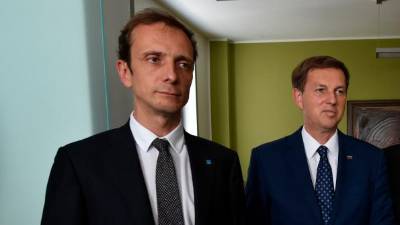 Massimiliano Fedriga in Miro Cerar ob odprtju novega sedeža slovenskega konzulata v Trstu, z njima tržaški župan Roberto Dipiazza in generalni konzul Vojko Volk (FOTODAMJ@N) Še Fedriga nima časa za Cerarja Peter Verč | 18. okt. 2019 | 6:23
