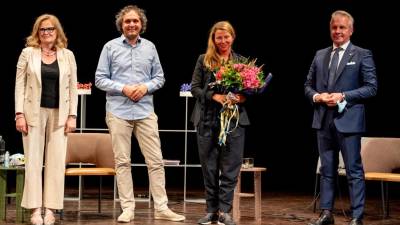 Z desne predsednik Mittelfesta Roberto Corciulo, igralka Nataša Matjašec Rošker, umetniški vodja Mittelfesta Giacomo Pedini in predsednica čedajskega kluba Soroptimist Michela Domenis (LUCA A. D’AGOSTINO / PHOCUS AGENCY) Kultura Nataša Matjašec Rošker in njena Brezmadežna Breda Pahor | 26. avg. 2021 | 16:01