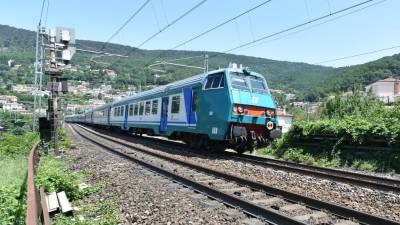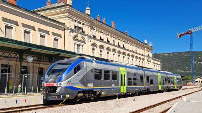 Vlak podjetja Trenitalia pred novogoriško železniško postajo (MESTNA OBČINA NOVA GORICA) Goriška V Novo Gorico testno pripeljal vlak iz Gorice Katja Munih | 13. sep. 2024 | 9:52