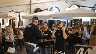 Policisti so mlade opozarjali, naj si nadenejo zaščitne maske (FOTODAMJ@N) Tržaška Nočno življenje po zaostritvi ukrepov Sanela Čoralič | 22. avg. 2020 | 19:17