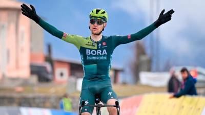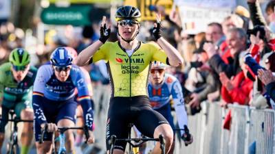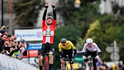 Današnji zmagovalec Nizozemec Olav Kooij (Team Visma) (PARIS-NICE/FACEBOOK) Šport Kooij vnovič najmočnejši v sprintu STA | 7. mar. 2024 | 17:21