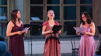 Med tremi protagonistkami predstave je tudi igralka SSG Nikla Petruška Panizon (v sredini)( FOTODAMJ@N ) Kultura Jaz sem prva ... Spletno uredništvo | 12. jul. 2021 | 16:23