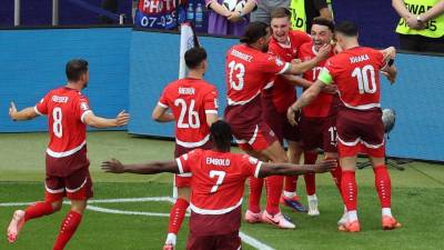 Veselje švicarskih nogometašev po zadetku Rubena Vargasa v uvodni minuti drugega polčasa (ANSA) Šport Italija končala svojo pot na Euru 2024 Erik Piccini | 29. jun. 2024 | 20:11