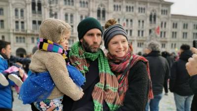 Maruša, Jakob in Jule na Velikem trgu v Trstu (v zimskem času) Še »V Trstu si in nisi v Italiji, si in nisi na Balkanu« Martin Lissiach | 18. jul. 2023 | 16:52