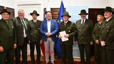 Odlikovanec Žarko Šuc četrti z desne (FOTO USZS) Še Žarko Šuc prejel red za lovske zasluge Spletno uredništvo | 9. sep. 2024 | 15:59