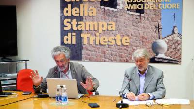 Sirovich in Jelinčič v Novinarskem krožku (FOTODAMJ@N) Tržaška Venec za junaške, a doslej »pozabljene« alpiniste Jaruška Majovski | 24. apr. 2019 | 8:36