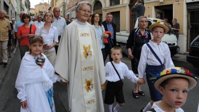 Dušan Jakomin, leta 2009, v sprevodu po Škednju ob 60-letnici svojega mašniškega posvečenja (FOTODAMJ@N) Tržaška Danes bi Dušan Jakomin dopolnil 100 let Valentina Sancin | 11. jan. 2025 | 11:02