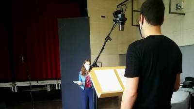 Režiserka Patrizia Jurinčič Finžgar in igralec Tadej Lukman med včerajšnjim snemanjem (PC) Goriška Zapluli so v nove gledališke vode Petra Ciglic | 6. jun. 2021 | 8:15