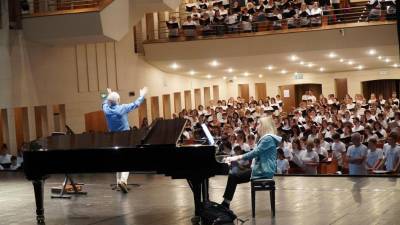 Projekt nastaja v sodelovanju s skladateljem Patrickom Quaggiatom in dirigentko Matejo Černic (na fotografiji) Goriška Trije novi venčki ljudskih pesmi za uvod v Zlata grla Spletno uredništvo | 3. apr. 2025 | 10:14