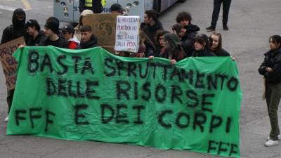 Protestniki ob današnji predstavitvi shoda Tržaška Petek za prihodnost okolja in družbe Valentina Sancin | 1. mar. 2023 | 17:52