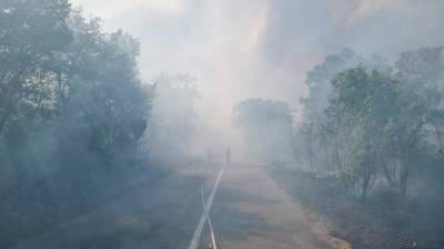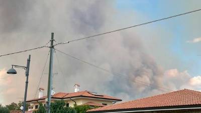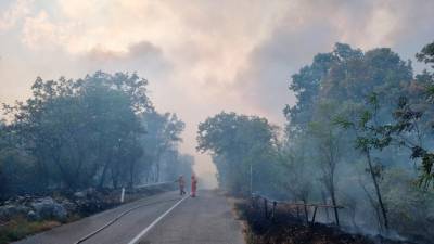 Na cesti, ki s pokrajinske ceste št. 15 vodi proti Vrhu, se vali gost dim (FOTODAMJ@N) Goriška Evakuirali tudi Poljane (video) Danjel Radetič | 28. jul. 2022 | 16:38