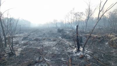 Pogled na pogorišče v Poljanah( FOTODAMJ@N ) Goriška Več je še aktivnih žarišč, ogenj zdaj ogroža Gabrje Spletno uredništvo | 29. jul. 2022 | 7:26