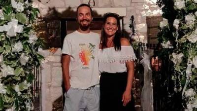 Yannick Pozzo in njegova izvoljenka Jessica pod »kolono«, ki so jima prebivalci Poljan postavili v ponedeljek Goriška Na poroki z mislijo na požar tik pred vasjo Danjel Radetič | 1. avg. 2022 | 6:25