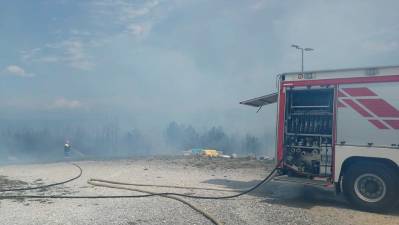 Gasilci med gašenjem požara (FOTO B.C.) Goriška Gasilci požar obvladujejo Katja Munih | 22. avg. 2019 | 13:11