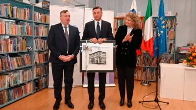 Slovenska predsednica Nataša Pirc Musar z italijanskim predsednikom Sergiom Mattarello danes v Ljubljani (ANSA) Še »Hvala, predsednik Mattarella, za Narodni dom« Sandor Tence | 10. sep. 2025 | 18:00