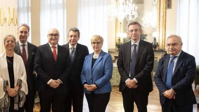 Slovaški predsednik republike Peter Pellegrini (v sredini) s predstavniki tržaške luške kapitanije (LUŠKA KAPITANIJA) Še Slovaški predsednik republike podpira naložbe v Trstu Spletno uredništvo | 5. maj 2025 | 13:33