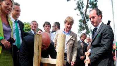 Luca Zaia, tedanji kmetijski minister in sedanji predsednik Veneta, 3. avgusta 2009 med sajenjem sadike glede na Proseku (ARHIV) Tržaška Prosek že spet rešuje prosecco Marjan Kemperle | 7. nov. 2021 | 8:10