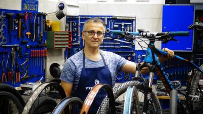 Giuliano Di Donato v svoji kolesarski delavnici v Trstu( ) Šport »Pandemija sprožila tretjo kolesarsko revolucijo« Jan Grgič | 11. apr. 2021 | 11:30