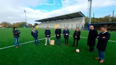 V Križu so ob zaključku del na nogometnem igrišču priredili novinarsko konferenco (FOTODAMJ@N) Tržaška V Križu predali namenu »najlepše nogometno igrišče na Tržaškem« Matej Caharija | 12. nov. 2021 | 16:20