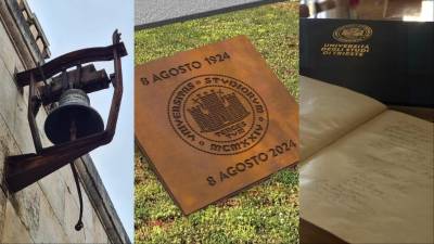 Zvon, časovna kapsula in knjiga častnih gostov (UNITS) Tržaška Sto akademskih svečk na torti Univerze v Trstu Spletno uredništvo | 9. avg. 2024 | 18:03