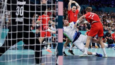 Blaž Blagotinšek v napadu (ANSA) Šport Slovenski rokometaši v polfinalu! Spletno uredništvo | 7. avg. 2024 | 23:02