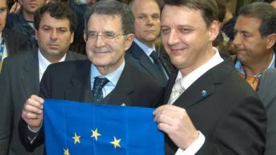 Romano Prodi in Anton Rop leta 2004 pri Rdeči hiši v Gorici (Arhiv Bumbaca) Še Slovenija v EU: Prodi in drugi protagonisti 20 let pozneje Spletno uredništvo | 30. apr. 2024 | 21:18
