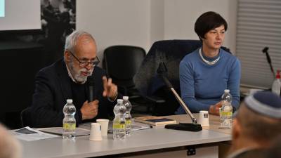 S Paolo Trevisan (desno) se je pogovarjal zgodovinar Michele Sarfatti( Fotodamj@n ) Tržaška Fašisti so v Lonjer internirali šest Romov Martin Poljsak | 25. jan. 2025 | 16:50