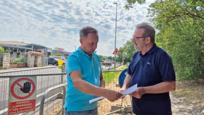 Župan Gabrovec in odbornik Corigliano nasproti prodajalne Tržaška Pred trgovino Conad v Devinu varna površina in prehod za pešce Spletno uredništvo | 22. jun. 2025 | 7:03