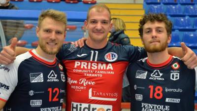 Jernej Terpin, Sandi Persoglia in David Umek (FB AGNELLI TIPIESSE) Šport Terpin, Umek in Persoglia z eno nogo že v polfinalu A2-lige Veronika Sossa | 12. apr. 2021 | 18:24
