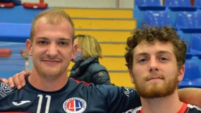 Sandi Persoglia (levo) in David Umek na fotografiji iz sezone 2020/21 (ARHIV) Šport V A3-ligi tudi letos dva ambiciozna slovenska odbojkarja Urška Petaros | 8. nov. 2024 | 11:07