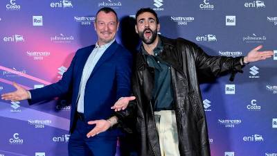 Nocojšnja voditelja Amadeus in Marco Mengoni (ANSA) Kultura V Sanremu se začenja 74. festival italijanske popevke Spletno uredništvo | 6. feb. 2024 | 16:10