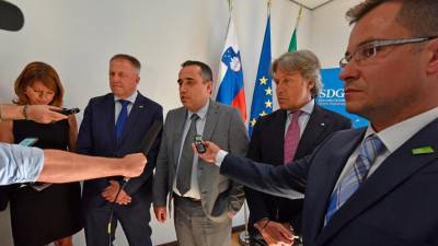 Minister Zdravko Počivalšek in deželni odbornik Sergio Emidio Bini na sedežu SDGZ (FOTODAMJ@N) Tržaška Obojestranska vlaganja za nadgraditev čezmejnega sodelovanja Vesna Pahor | 12. jul. 2019 | 19:36