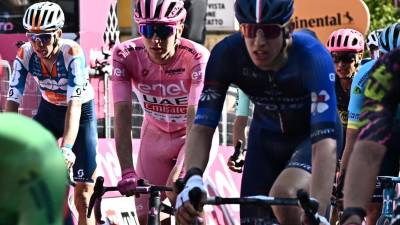 Pogačar po prihodu v Rapolano Terme ( ANSA ) Šport Tadej Pogačar ostaja v rožnatem STA | 9. maj 2024 | 17:22