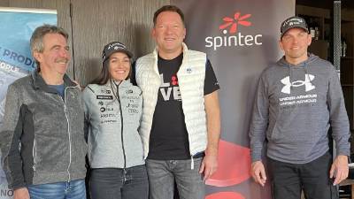 Z leve: Dario Štolfa (Alternativa Sport), Caterina Sinigoi, Goran Miškulin (Spintec) in trener Aleš Sever (EP) Šport Januarja bi lahko nastopila v svetovnem pokalu na Zlati lisici Erik Piccini | 15. nov. 2024 | 7:21