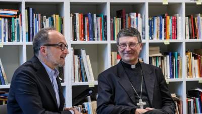 Škof Enrico Trevisi se je srečal z novinarji in odgovornim urednikom Primorskega dnevnika Igorjem Devetakom( Tedeschi/Fotodamj@n ) Tržaška Škof v redakciji Primorskega dnevnika Sara Sternad | 12. dec. 2024 | 20:30