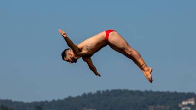 Platforma je omogočala skoke iz višine 27 metrov( TEDESCHI/FOTODAMJ@N ) Šport Vrtoglavi skoki so zabavali domačine in turiste Martin Poljsak | 15. jul. 2024 | 18:40