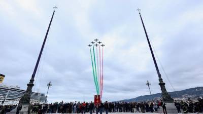 Prelet letal skupine Freccie tricolori( Fotodamj@n ) Tržaška »Trst v srcu Italije in Evrope« Spletno uredništvo | 26. okt. 2024 | 15:44